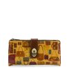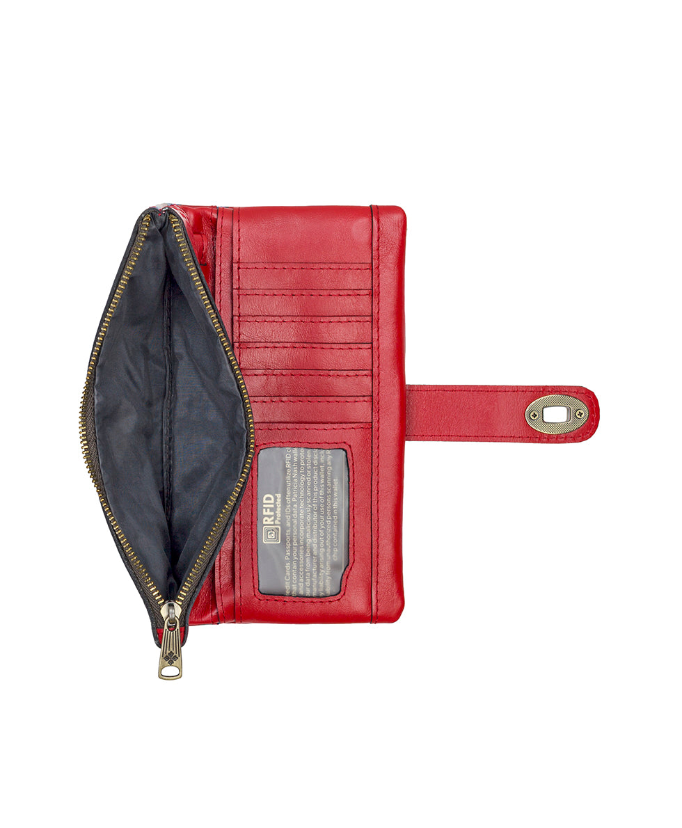 This classically styled wallet features supple leather and expert artisanal craftsmanship. It includes multiple card slots and note compartments. along with a clear ID window. Hidden magnets secure it in addition to a pretty twist-lock closure. It has a wristlet strap that can be retracted when you don’t need it. In the vibrant new Grecian Rose Print. the Annesley transcends time and trends.