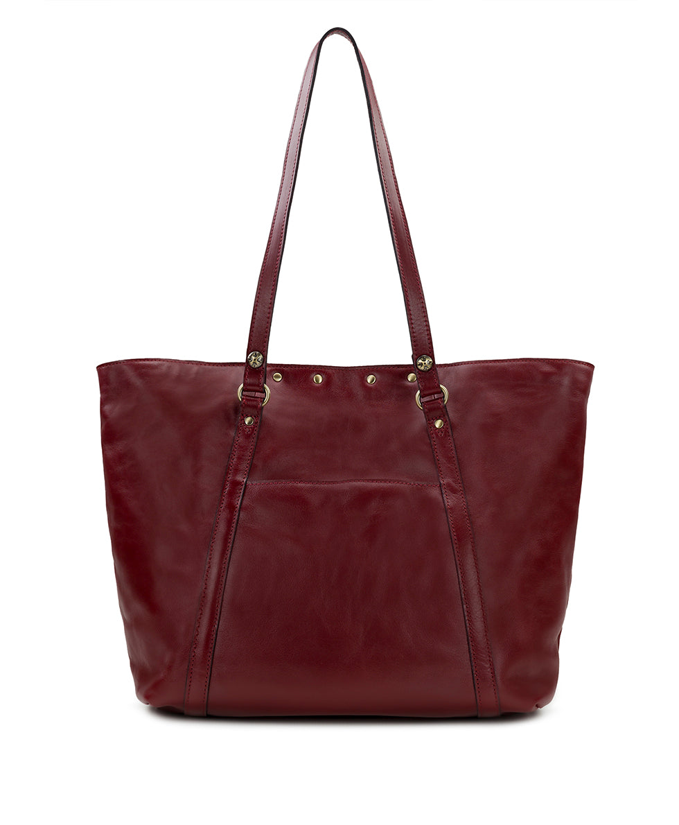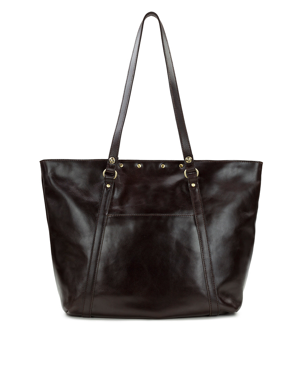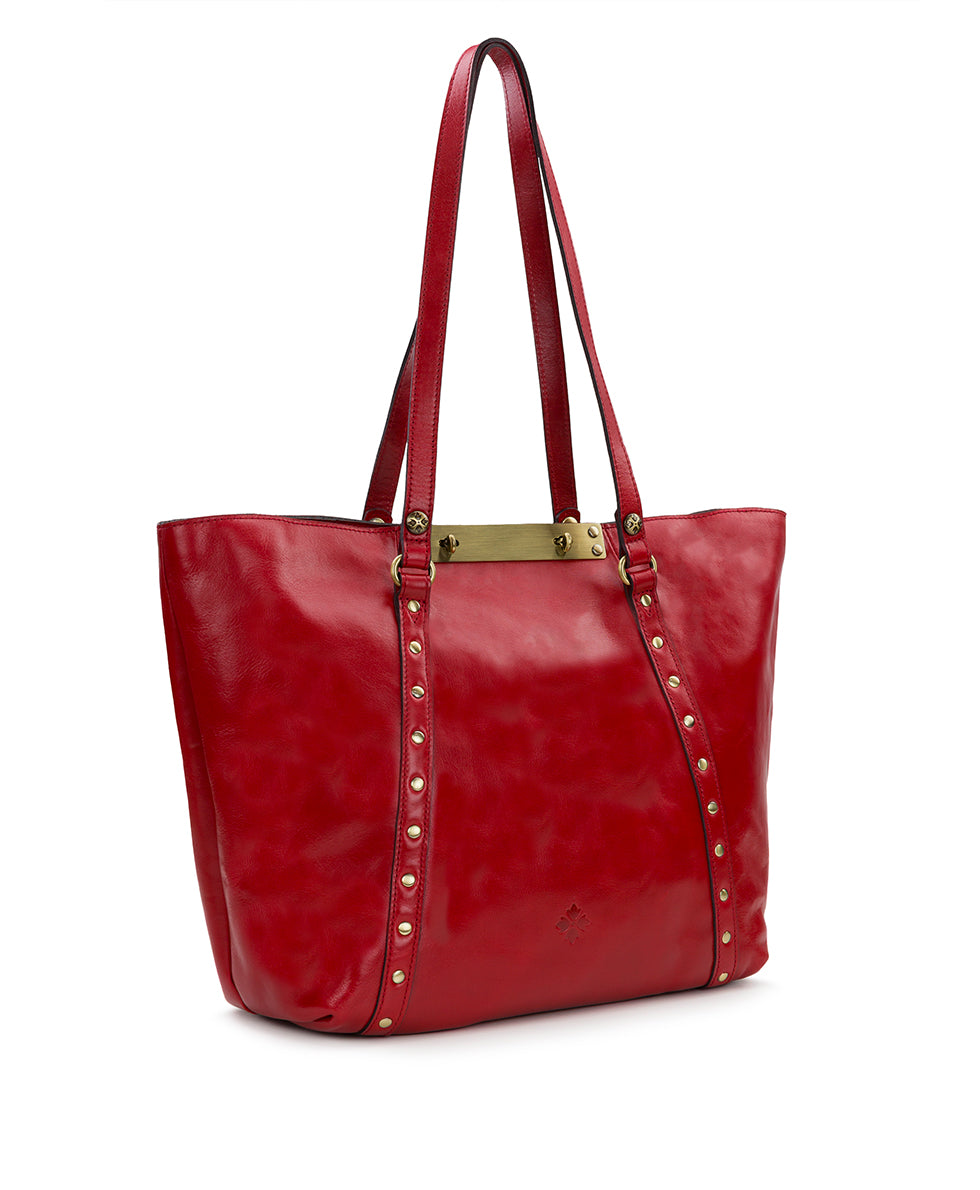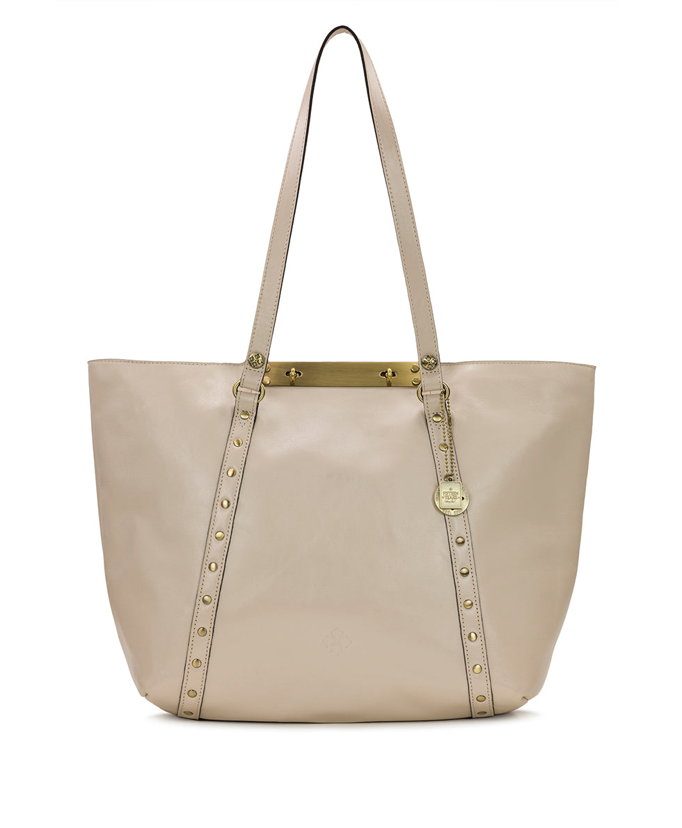 The Benvenuto Tote is the ultimate blend of practicality and signature style. With its bold. spacious design. it’s the perfect tote for every occasion. from busy office days to weekend getaways and evenings on the town. The simple yet sophisticated design features easy over-the-shoulder handles for comfort. stud details that add a touch of edge. and a secure double twist-lock closure to keep your belongings safe. Crafted from full-grain Vintage Distressed Leather. the Benvenuto only gets more beautiful with age. making it a timeless piece that you’ll rely on for years to come.