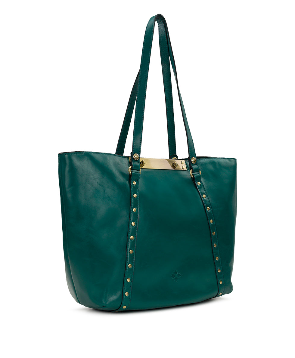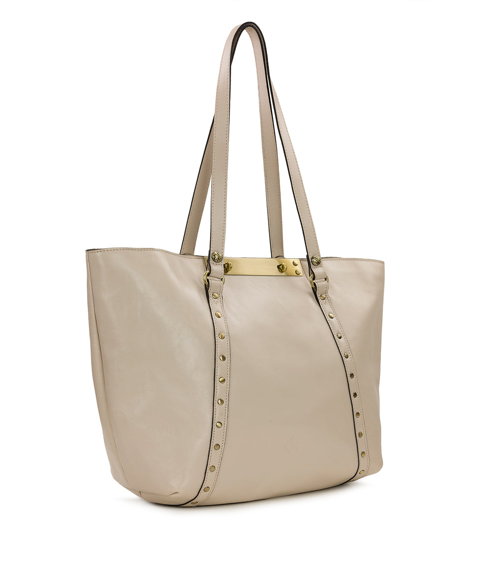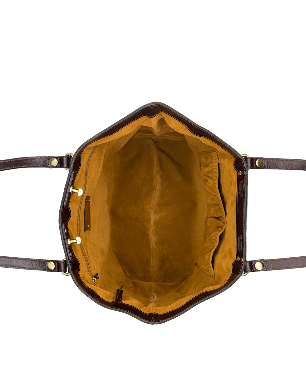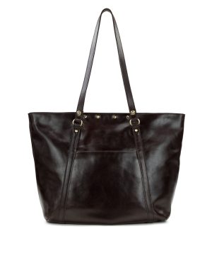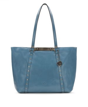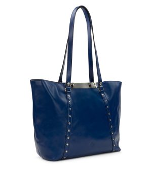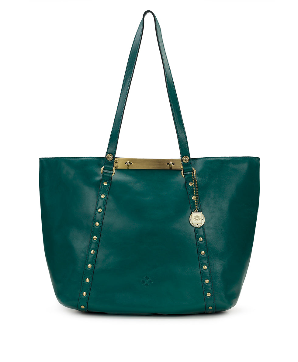 The Benvenuto Tote is the ultimate blend of practicality and signature style. With its bold. spacious design. it’s the perfect tote for every occasion. from busy office days to weekend getaways and evenings on the town. The simple yet sophisticated design features easy over-the-shoulder handles for comfort. stud details that add a touch of edge. and a secure double twist-lock closure to keep your belongings safe. Crafted from full-grain Vintage Distressed Leather. the Benvenuto only gets more beautiful with age. making it a timeless piece that you’ll rely on for years to come.