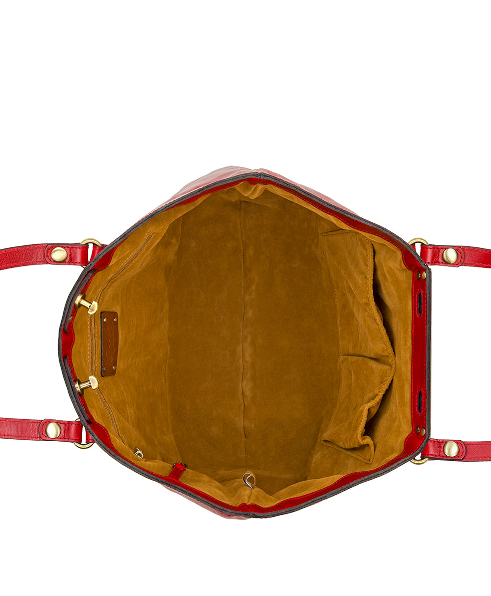 - Signature brushed metal hardware. heavy handcrafted stitching