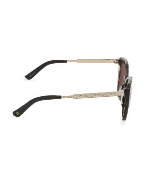 Part of our inaugural sunglasses collection. these frames pay homage to the supremely stylish and beautiful Brigitte Bardot. Long regarded as a muse for leading designers. channel her sophistication with these flattering cateye-shaped Tortoise frames. Featuring Brown gradient lenses. the outer temple arms display our floret grape leaf logo design. and the tips are wrapped in leather.