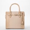 A modern twist on a must-have silhouette. Cami is a medium sized satchel for everyday style. The trendy square shape and sleek trapunto details make this an effortlessly chic way to upgrade your daily style. The zip top closure keeps your essentials secure and rolled handles allow you to carry with comfort. The back slide in pocket. interior zip pocket and key clip give you effortless organization. Bottom feet protect the handbag from any scuffing.