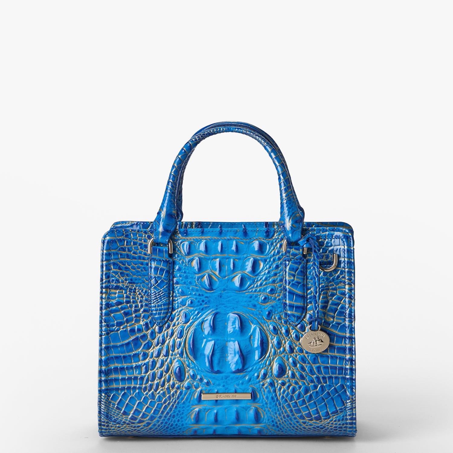 Featured in Electric Indigo Ombre Melbourne. a vivid blue ombre. Saturated bold blues are enlivened by a touch of shimmery gold that captures attention with its intensity. Made with genuine leather.