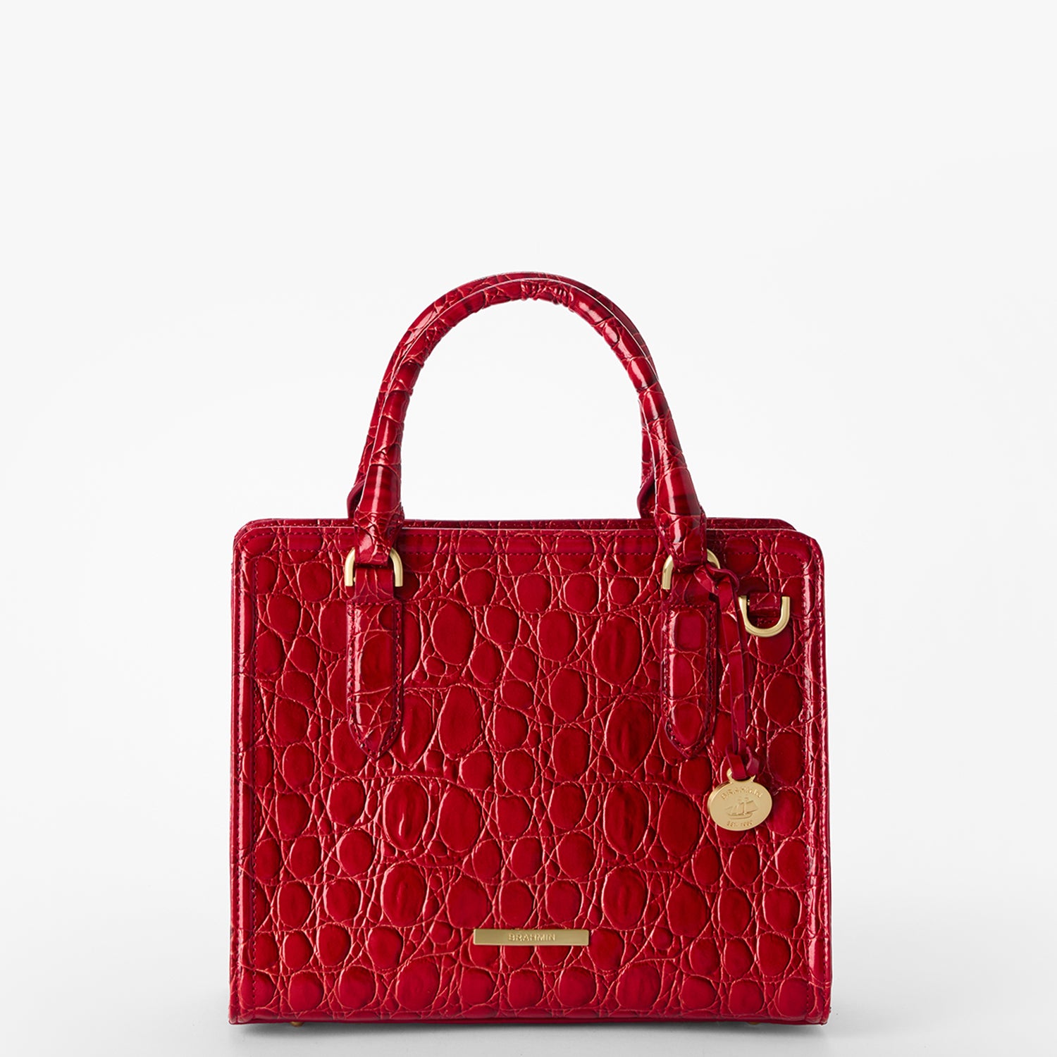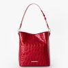 Featured in Sriracha Vanderbilt. a sophisticated new croc texture in a spicy new red for summer. This croc embossed leather features a rounded texture reminiscent of vintage crocodile handbags for a luxe look. The statement square metal buckle brings added sophistication to the overall collection. A hot hue in statement Sriracha is perfect for warmer weather. Made with genuine leather.