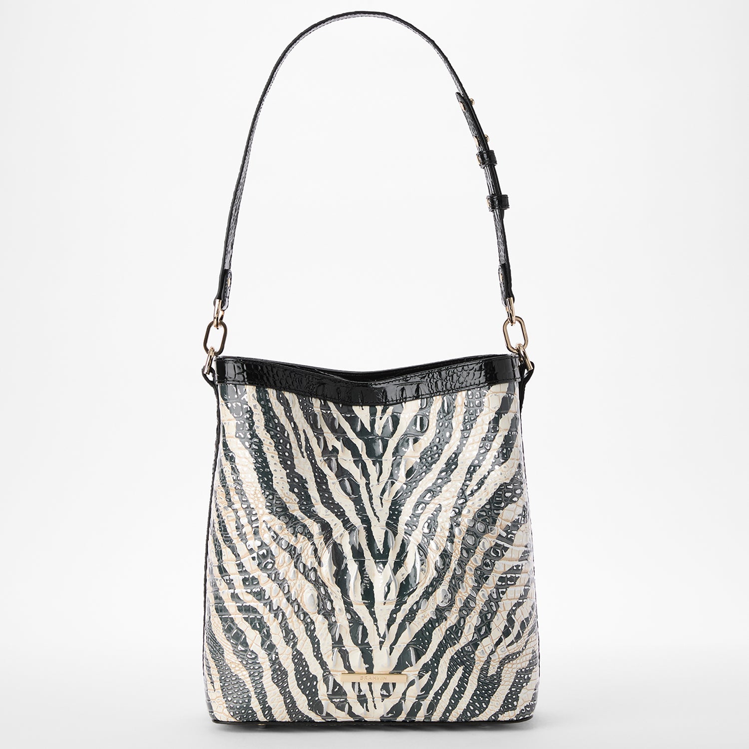 Featured in Everlasting Encore. an eclectic print that takes its inspiration from the hand-painted artistry of antique carousels. The signature black and white is instantly identifiable while the light grey wash and subtle silver tipping create an antique effect. A black trim frames the zebra print and makes it effortlessly wearable. Made with genuine leather.