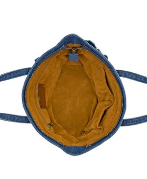 Designed to put a swing in your step. this elegant silhouette is gorgeous in denim with its floral appliques that bloom from its profile. The perfect symbiosis of practicality and beauty. the Corallina is designed to tote all your day. evening. and weekend needs with its roomy structure and easy access to the interior.