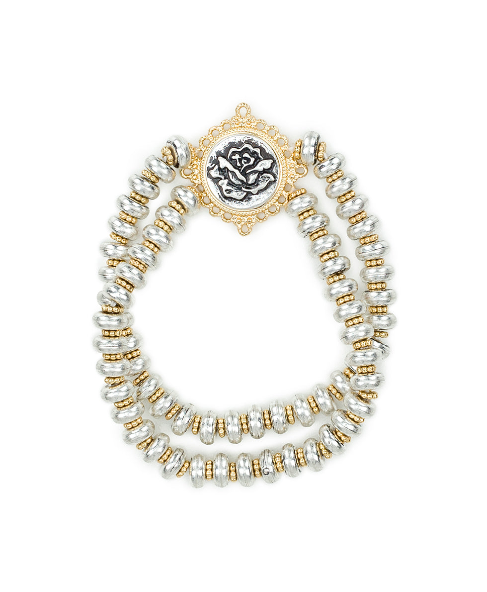 Double Stretch Bracelet - Carved Metal Rose