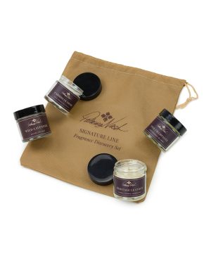We are sure you will love each of the scents in our candle selection. but if you are having trouble deciding. the Discovery Candle Set will introduce you to all four of Patricia’s exclusive blends. and they are beautifully packaged in our custom drawstring bag.