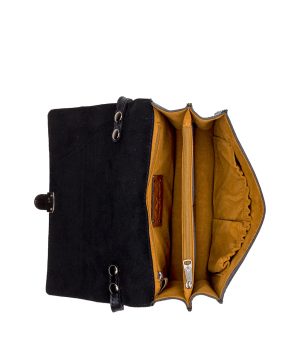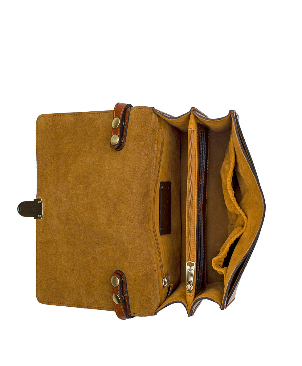 - Signature brushed metal hardware. heavy handcrafted stitching