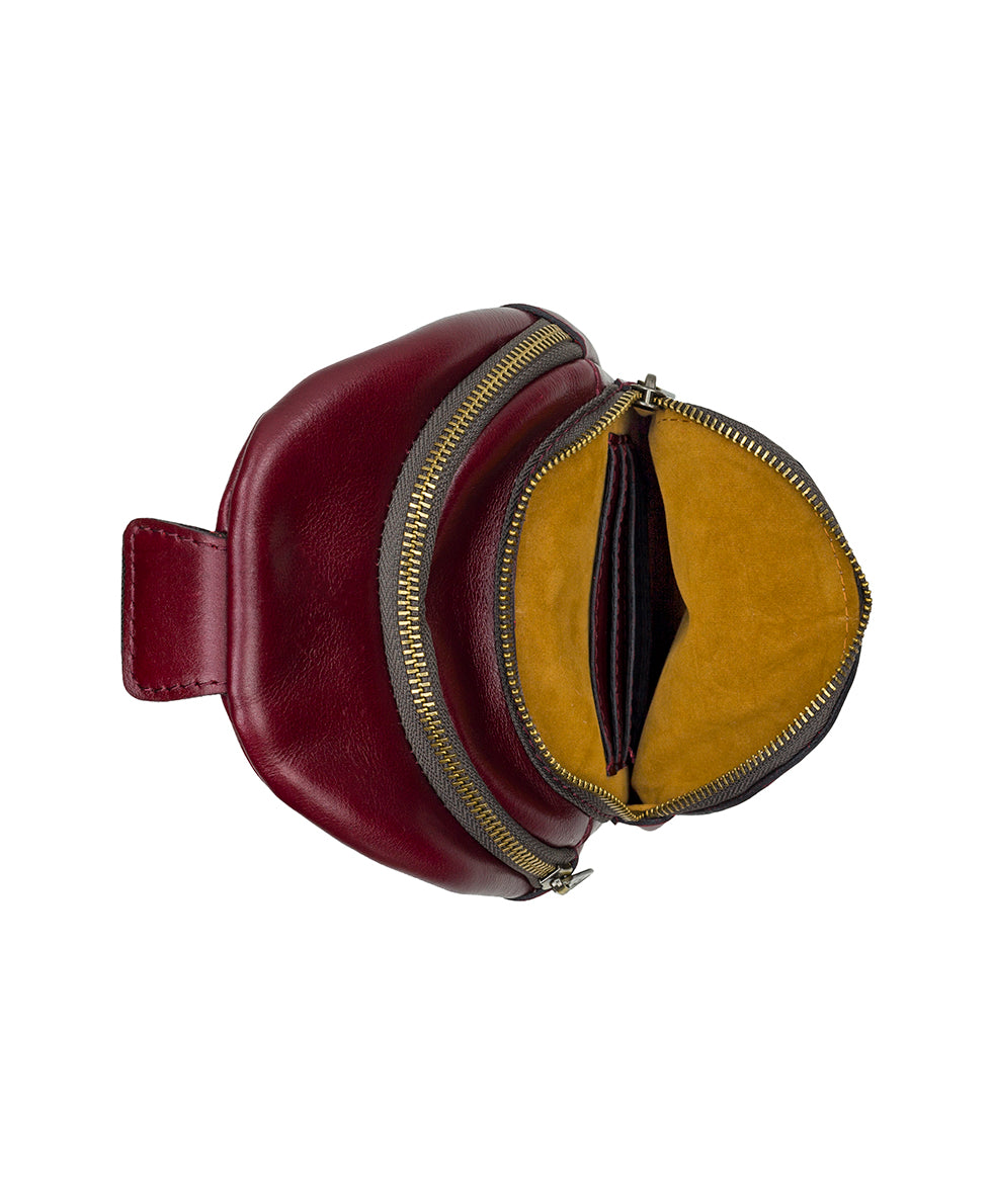 - Exterior: 1 rear slip pocket. 1 front zip pocket. burned edge finish