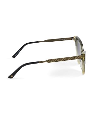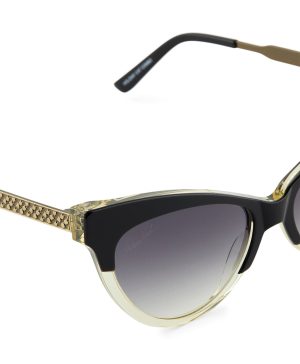 As Marilyn Monroe said. We are all of us stars. and we deserve to twinkle. The Monroe Cateye Sunglasses are bombshell alluring and will definitely put a twinkle in your eye. In an elegant color block effect. the top of the frames are black and the bottom are a smoky champagne. The temple arms showcase our signature floret grape leaf logo in signature brushed brass. and the lenses are a grey gradient. Your sophistication level will be off the charts.