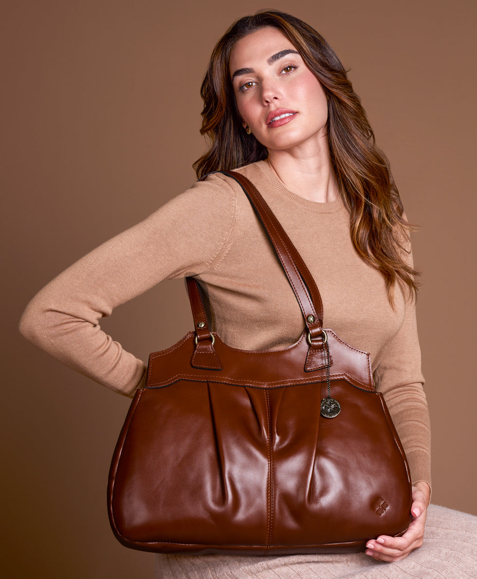 Feminine and practical. the Napoli Satchel is the everyday bag you need. Its softly curved silhouette feels both inviting and timeless. while its ideally sized interior keeps all your essentials close at hand. Crafted in iconic Heritage Leather and featuring our 15th Anniversary medallions. this bag adds a touch of warmth and charm to any look. Whether you’re strolling through a farmers’ market. heading to a meeting. or enjoying an evening out. the Napoli Satchel brings elegance to every moment.
