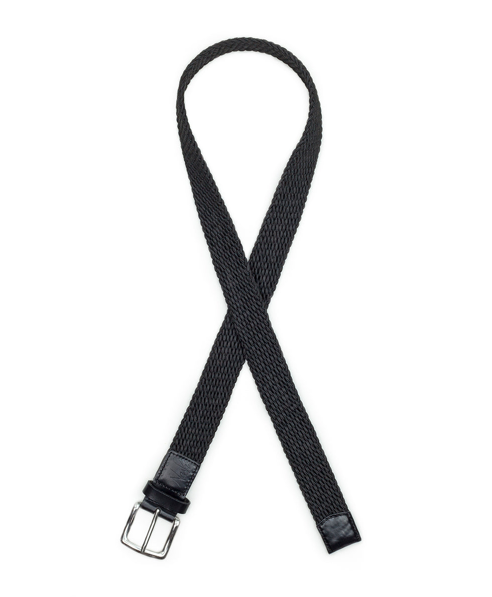An essential accessory. this belt of woven rope and premium leather is fastened with a square buckle of signature brushed metal. Casual and polished. it couples a slightly stretchable design with a classic look.