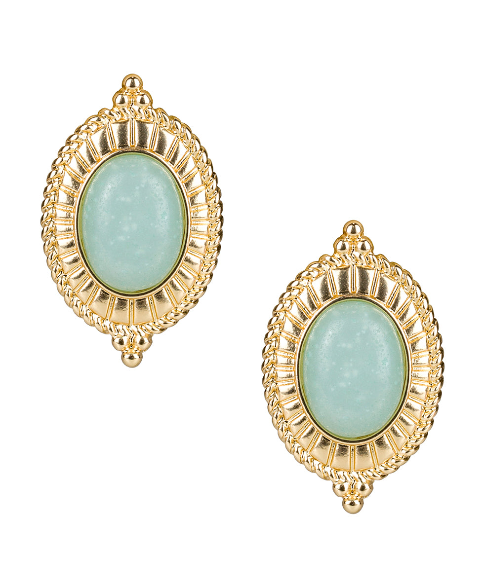 - Metal plated. zinc alloy. surgical steel post. amazonite