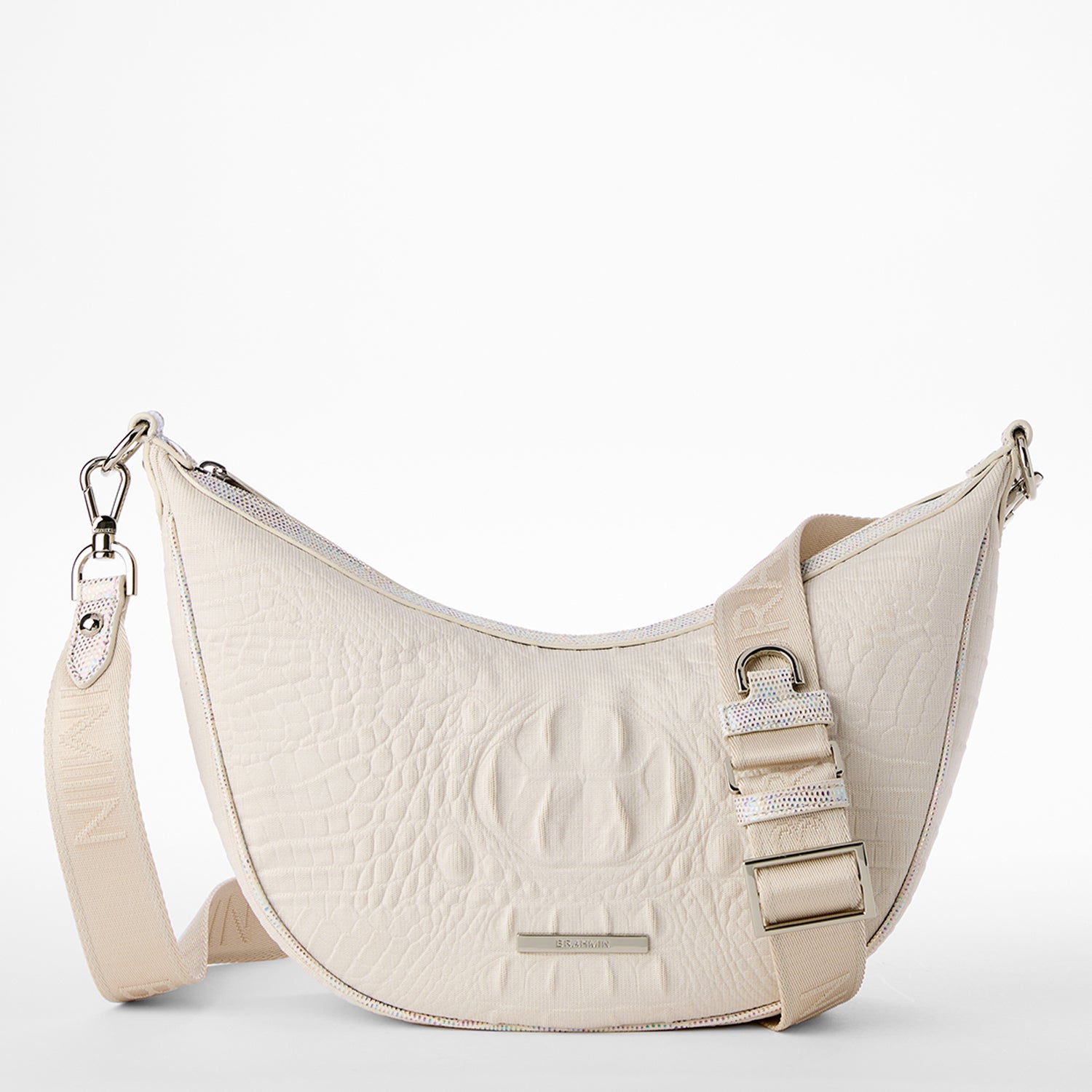 Featured in Beige Brahmin Luxe Leisure. an elevated athleisure collection designed to keep up with every move. An innovative soft knit variation of our iconic Melbourne texture is paired with a matching lizard trim that instantly elevates. The combination of materials is perfect for everyday ease and the lightweight design is made to take you everywhere. From morning Pilates to afternoon walks. and every activity in-between. Luxe Leisure keeps you looking stylish throughout it all. Nickel hardware and matching tonal logo webbing give this a fresh. modern look.