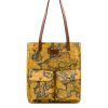 - Exterior: 2 slip pockets with magnetic snap closure. 1 zip pocket. tassels. deep embossed logo. protective metal feet. burned edge finish