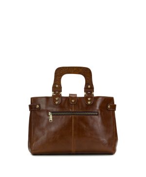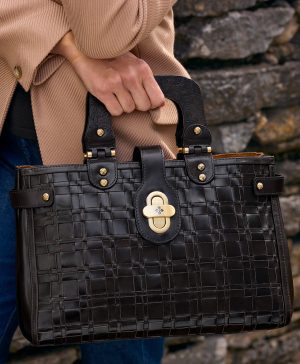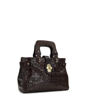 In Vintage Distressed Woven Leather. the Sancia has eye-catching wood handles and supple leather trim. A true statement piece. it combines elegance and charm. bringing a touch of vintage glamour to your wardrobe. Carry it with confidence. It is effortless. chic. and always in style.