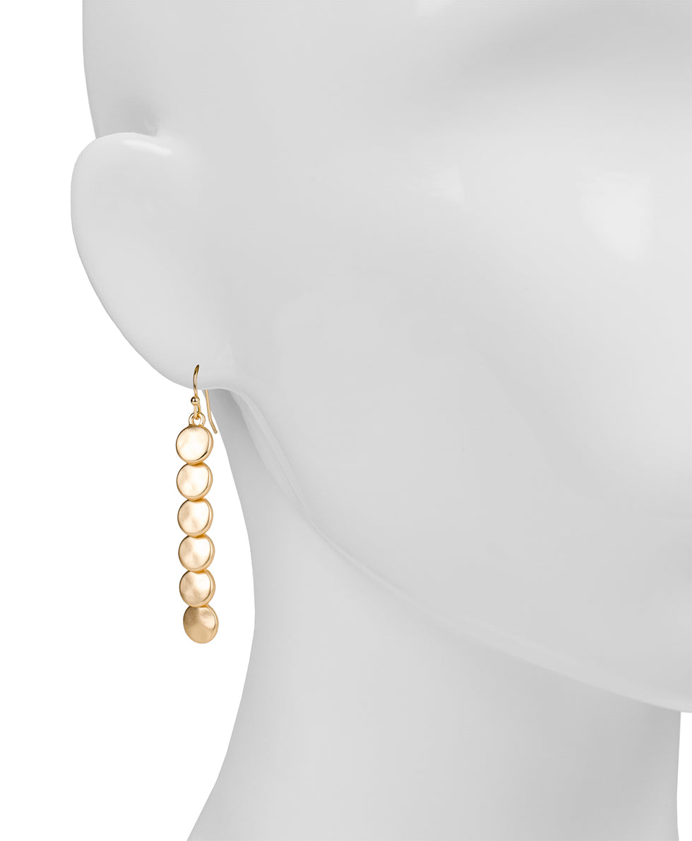 Beautiful hammered metal discs give these shoulder duster earrings their unique charm.