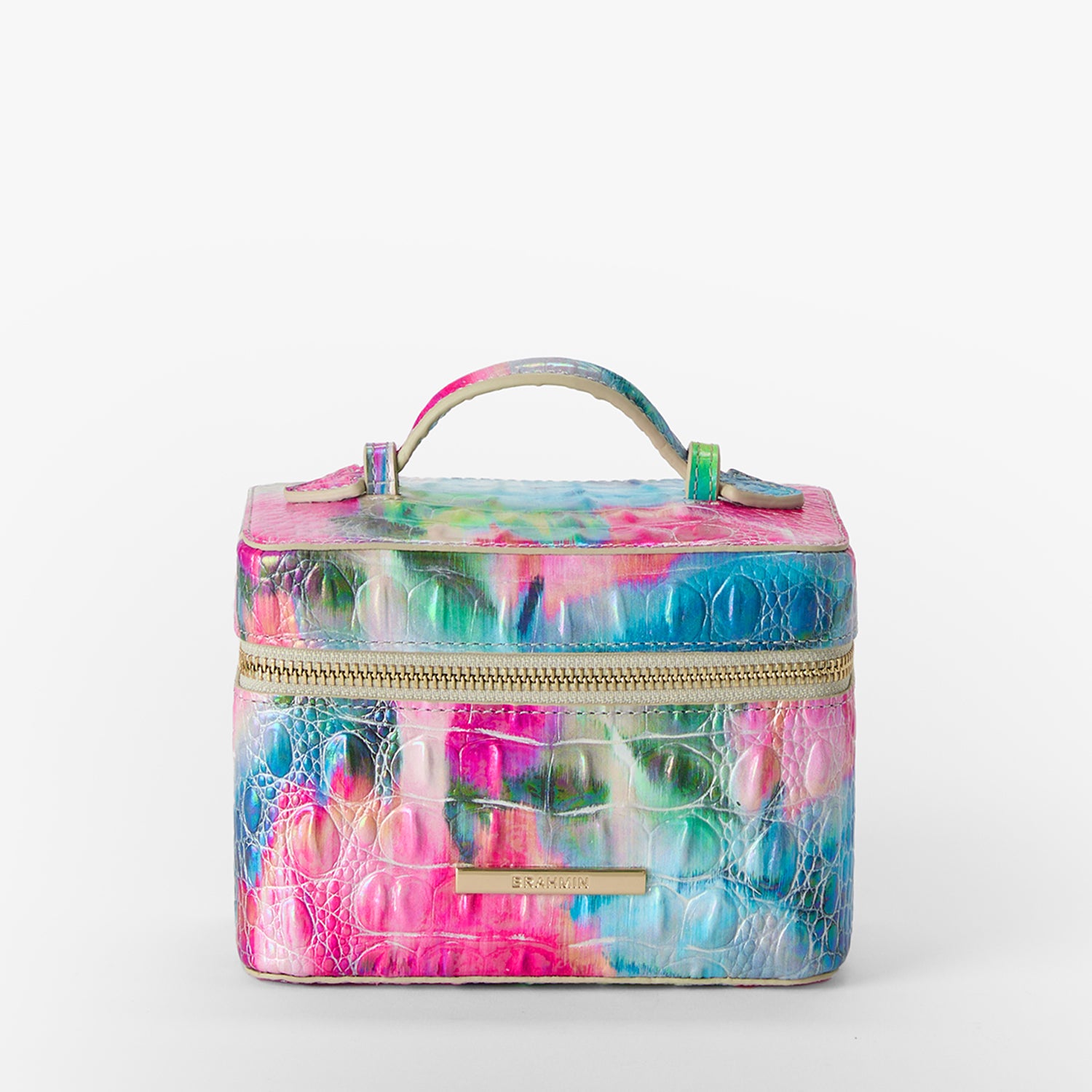 A more compact version of our best-selling Charmaine make-up case. The smaller size allows you to travel light (and stay organized). An interior elastic pocket gives you a secure spot to store your essentials and the zip around closure keeps everything safe. A flat top handle allows for easy carrying and a chic accent.