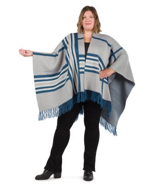 Elevated dressing can still be accomplished as the weather turns cooler. Perfect for those times when a jacket is too much but a cover is called for. this elegant piece. with its contrasting stripes and pretty silhouette. proves shawls don’t have to be slouchy. Lend glamour to both your casual and dressy attire.