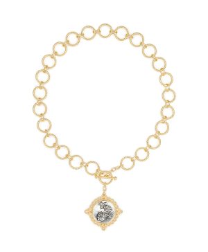 This elegant toggle necklace features a beautifully carved metal rose. blending timeless romance with a modern edge. The front toggle closure adds a bold. stylish detail. while the floral centerpiece offers just the right amount of softness. Perfect on its own or layered. it’s a striking piece that effortlessly elevates any look.