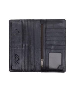 - Interior: 13 credit card slots. 1 ID window. 1 zip pocket. 3 bill pockets; removable card sleeve with 6 credit card slots. 1 bill pocket. hidden magnetic closure; deep embossed logo. leather trim. nylon lining
