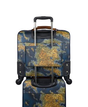 Get ready for your next trip with the Velino Trolley. Featuring our latest map print. Greek Map. this carry-on is water-resistant and features a large exterior zip pocket for easy access to your travel accessories. The four 360-degree spinner wheels provide effortless maneuverability. The main zippered compartment opens flat and offers a large padded slip pocket on the door panel. With a retractable telescopic handle. you can use the rear pocket to slip it over the handle of the Vettore Large Trolley.