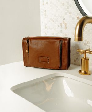 This convenient men’s toiletry bag is crafted from gorgeous Heritage Leather. providing both durability and timeless style. Designed with practicality in mind. it features a secure zippered top for easy access to grooming essentials and a sturdy side handle for effortless carrying. The rich texture and natural character of the leather give it a sophisticated. rugged appeal that only gets better with age. Compact yet spacious enough to hold daily necessities. this toiletry bag is perfect for travel. the gym. or everyday organization. combining refined craftsmanship with everyday functionality.